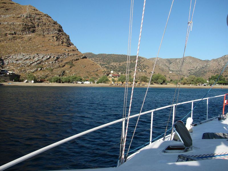 Die Bucht selbst ist ein Traum. Fallwinde, auch Nachts haben uns letztendlich zur Routenänderung bewogen - so kehrten wir nach nur einer Kykladeninsel wieder in den ruhigeren Saronischen / Argolischen Golf zurück.