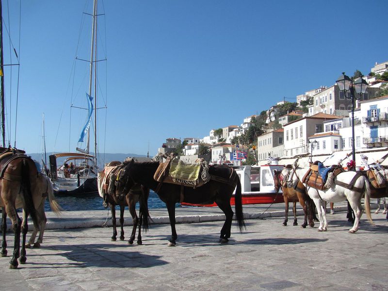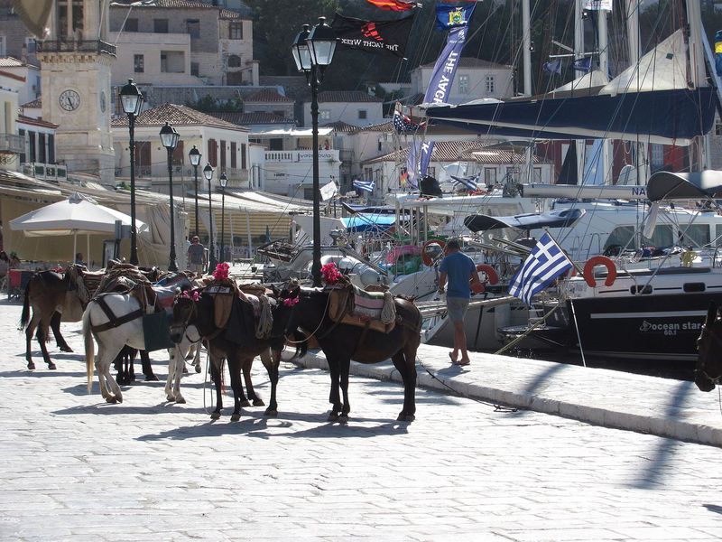 In Hydra gibts keine Autos, die Transportaufgaben übernehmen Esel und Maultiere, der Hafen ist überfüllt, high life...