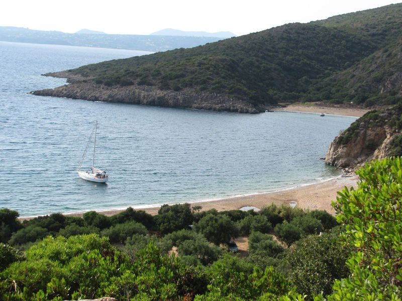 Unser Traumstrand, wo wir insgesamt 6 Tage vor Anker lagen, war Elafonisios - weißer Sand, dennoch glasklares türkises Wasser.