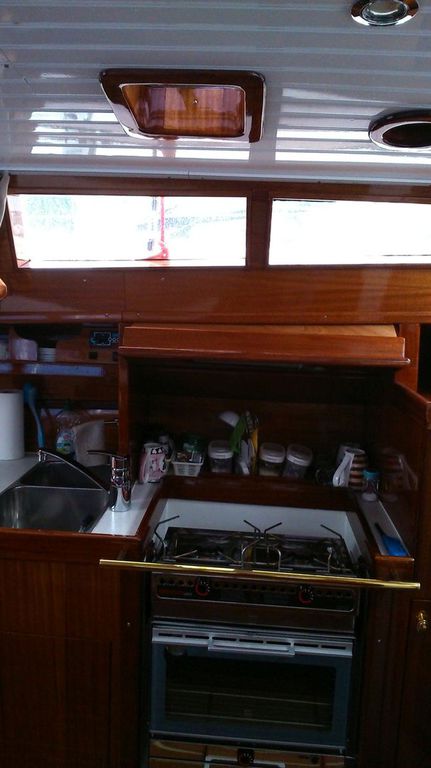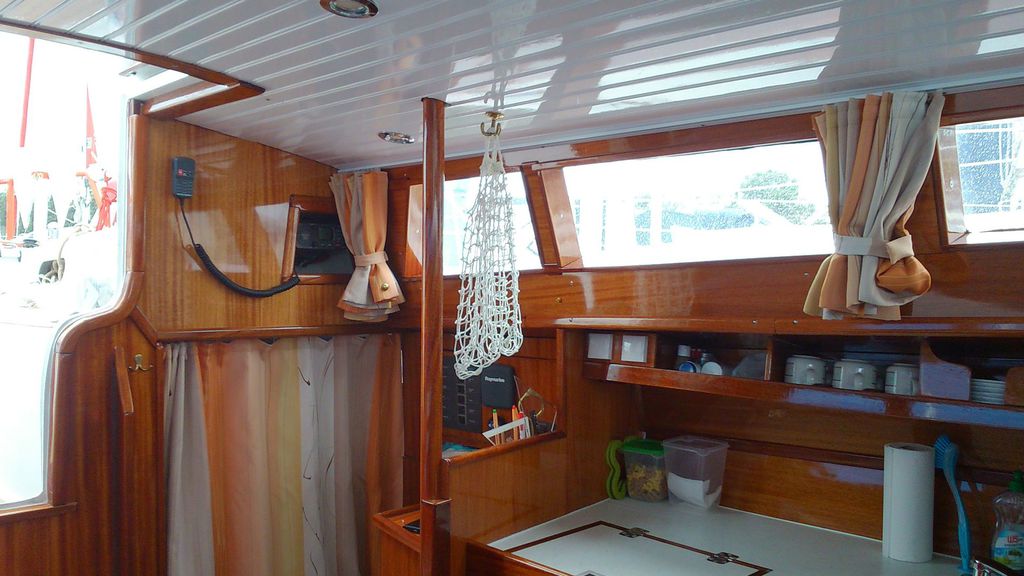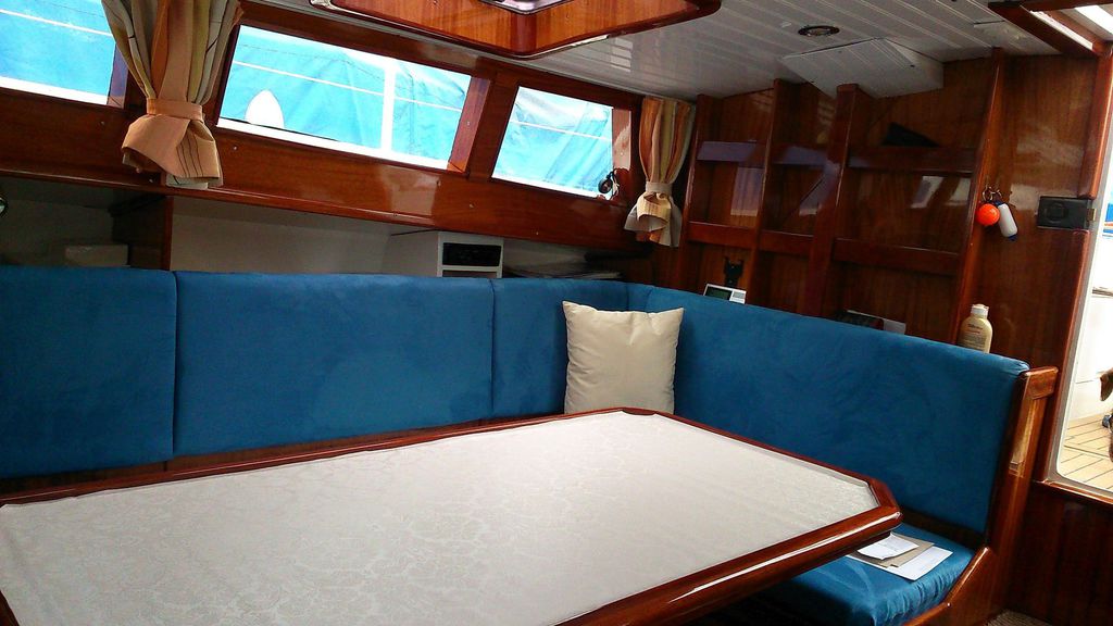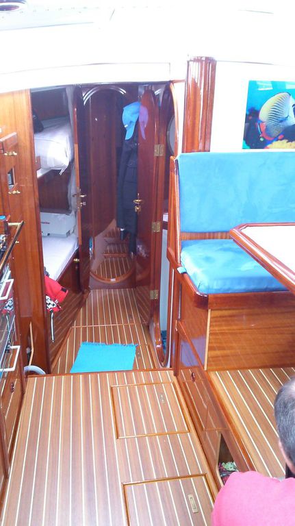 Die Einteilung ist auf 2-Personen Langfahrt zugeschnitten. Sehr viel Stauraum, viel Platz in unserer Kabine, großes schönes Bad/WC. Platz für 4 Gäste, wobei die Abtrennung nur durch einen Vorhang erfolgt.