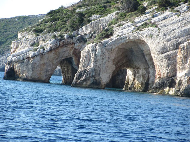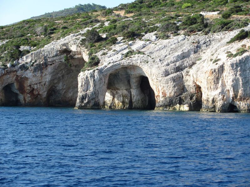 Die Insel selbst war für uns ein kleiner Kulturschock. Ballermann auf Laganos beach ist nicht unser Ding, soweit war´s ohnehin klar, aber vor auch unter Tags gings rund. Auf die Schildkröten, die unter anderem an dieser Bucht Ihre Eier ablegen wird eine regelrechte Hetzjagd veranstaltet. Die Ausflugsboote fahren von mehreren Seiten bis auf einige Meter an die aufgetauchten Tiere heran, Gekreische und Getrample inklusive. Man sollte die Veranstalter mitschwimmen lassen. Gut dass es geschützte Bereiche für die Gelege gibt. Die 2. Hauptattraktion, die "blue caves" im Norden waren leider auch nicht so spektakulär wie es auf den Prospekten aussieht.