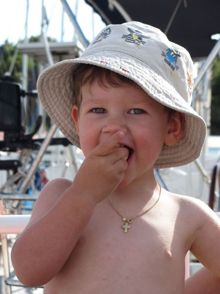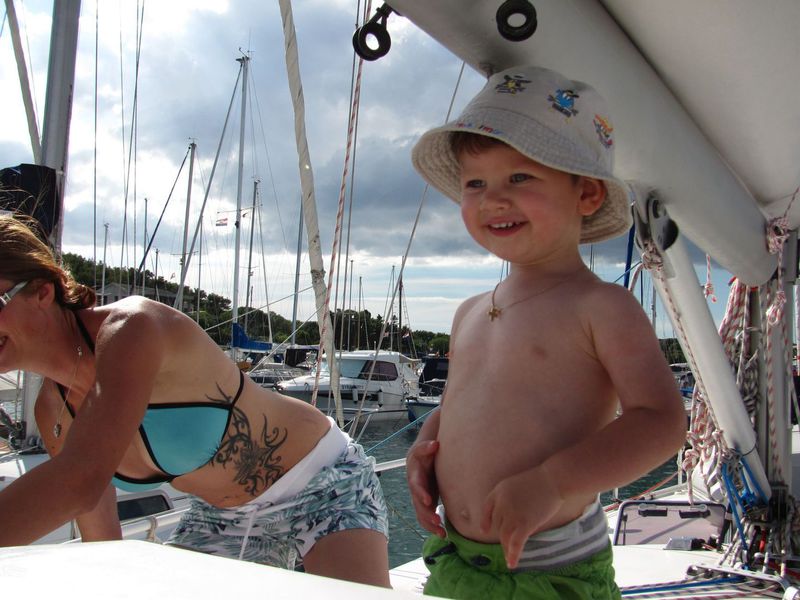 Auch Isabell gab sich die Ehre. Nachwuchssegler Alessandro im Gepäck. Leider brachte Sie die Bora mit, an Segeln war nicht zu denken, den Windmesser nur kurz eingeschalten - 55 Knoten im Hafen... es waren dennoch ein paar schöne Tage.