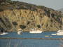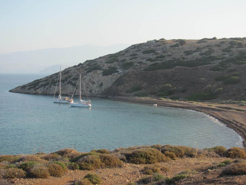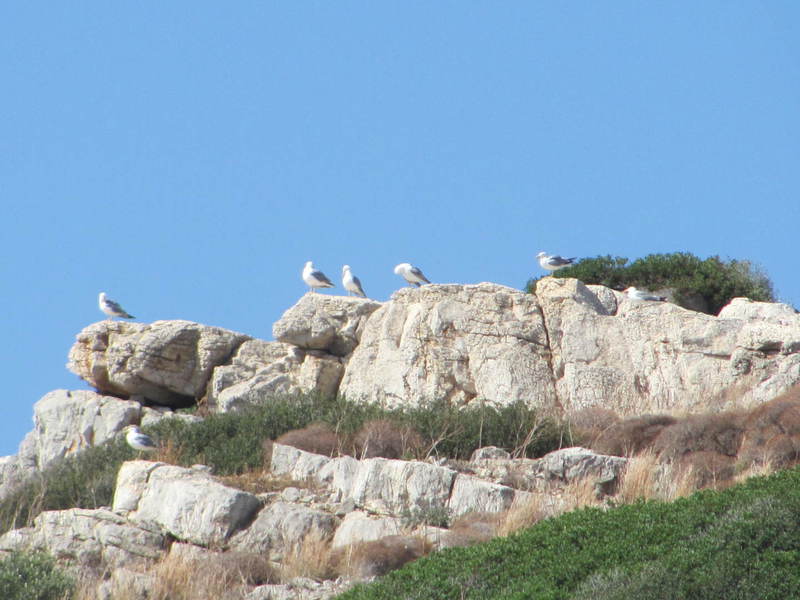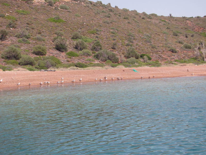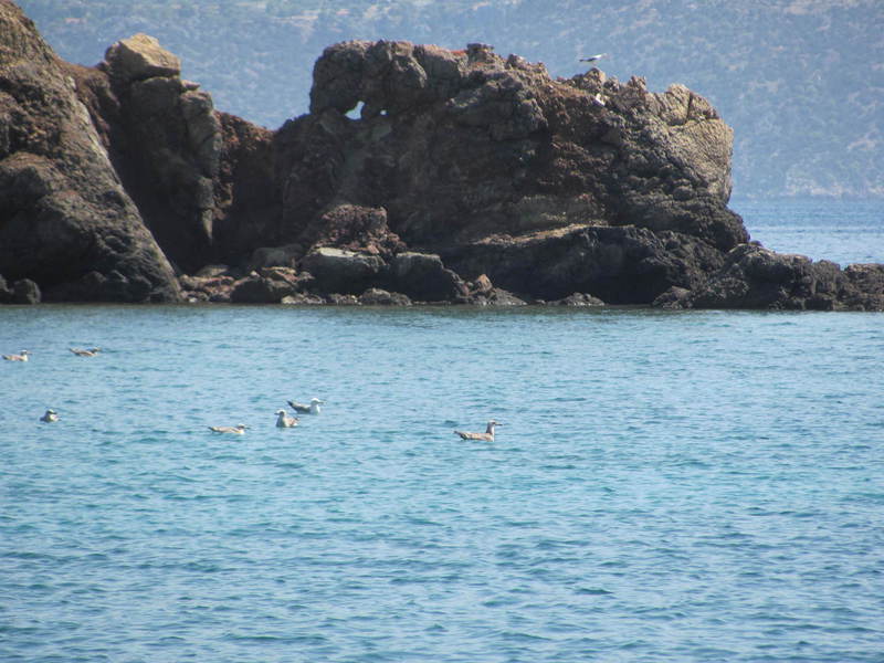 Am Weg zum Kanal machen wir einen Abstecher nach Nisoi Alkionides - in den Törnführern wird das sehr schön beschrieben, jedenfalls eine ziemlich menschenleerer Abschnitt, Seevögel gibt es dafür umso mehr... Erstmals stimmen die Tiefenangaben der Seekarte nicht mit der Realität überein - in der Karte werden 7m angegeben, das Echolot hat keine Anzeige - ich dachte schon an Defekt, abr die Tiefe beträgt mehr als 50m und hier begint erst die Anzeige - mehr als nur knapp daneben. Jedenfalls fahren wir sehr vorsichtig an den Ankerplatz, unserem Nachbarboot, der nach uns kommt ergeht es genauso.